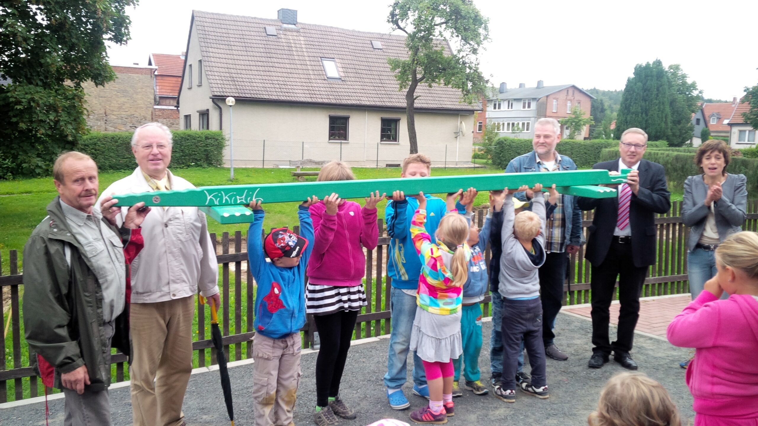 Anlässlich der Sommertour des Landtagsabgeordnete Andreas Steppuhn waren der Ortsvorsitzende Günter Blum mit dem SPD Stadtrat Jürgen Illing in der KITA „Zwergenstübchen“ in Friedrichsbrunn zu Gast. Gemeinsam informierten Sie sich über die Arbeit in der Kindertagesstätte. Unter großen Jubel wurde das „Kikidil“ den Kindern überreicht. Neben der Überreichung des Spielgeräts informierten sich die SPD Vertreter über die Umsetzung des KiföG, dazu stand die Leiterin Christiane Nordhaus Antwort.